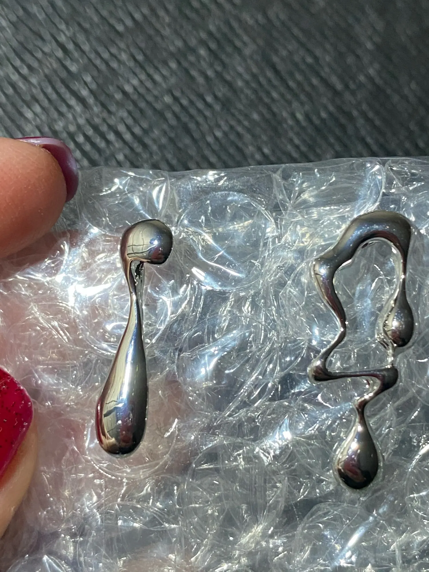 Очень интересные, со стальным блеском. Гвоздики были защищены специальными прокладками.