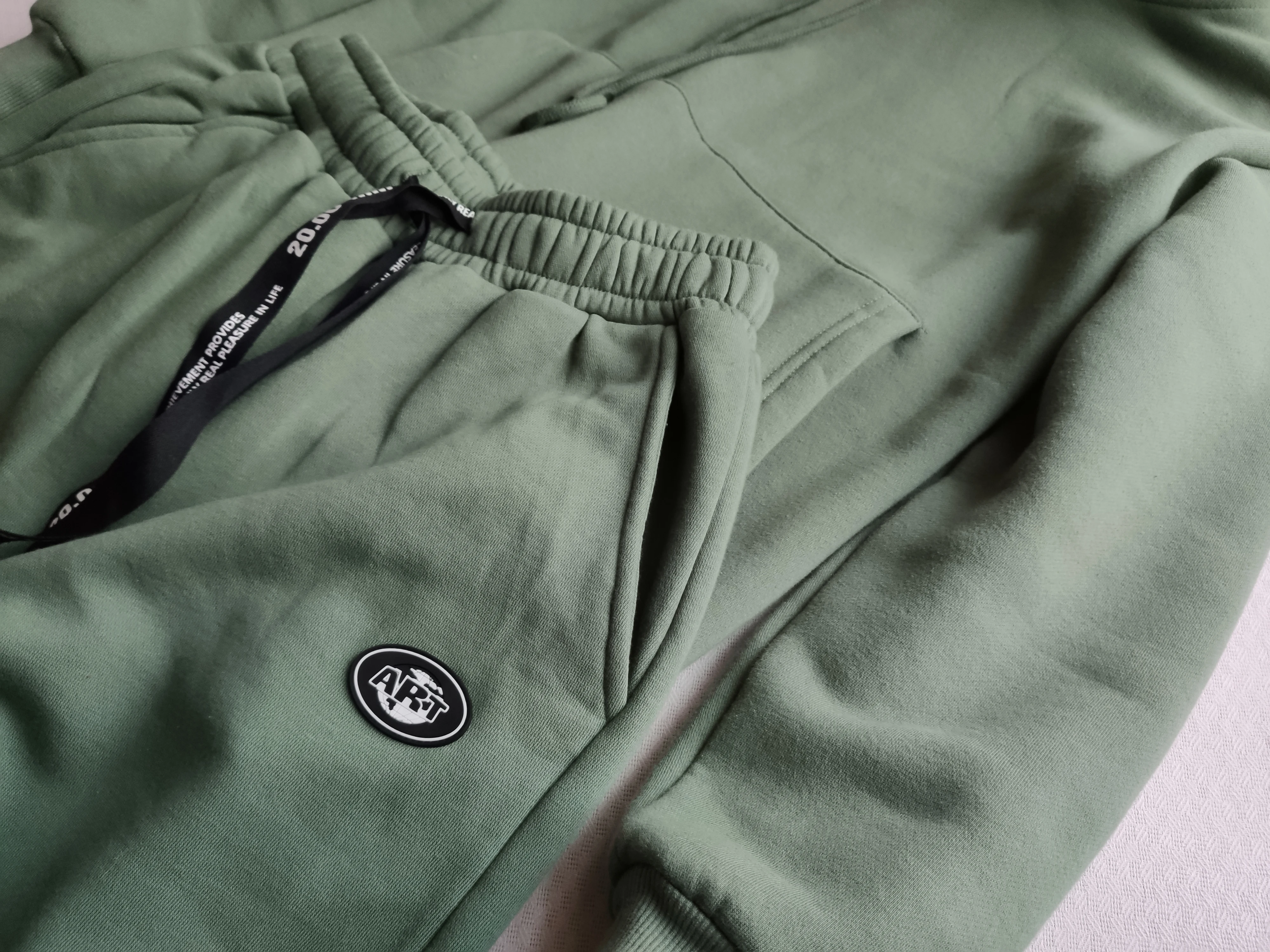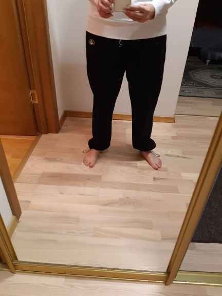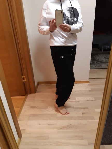Прошлой осенью я заказала в этом магазине зелёный худи, он отлично себя показал, теплый и уютный. И вот спустя год решила заказать ему в напарники штаны, пришли за 11 дней в Питер, качество немного отличается, внутри худи - флис, а у штанов - петелька. Цвет одинаковый, размер S обоих вещей, я 159см ростом и 47кг. Длина брюк для меня идеальная, и в случае, если резинку внизу стянуть, и если оставить штанины прямыми. Меня мучает только один вопрос, почему я не их заказала в прошлом году? :)