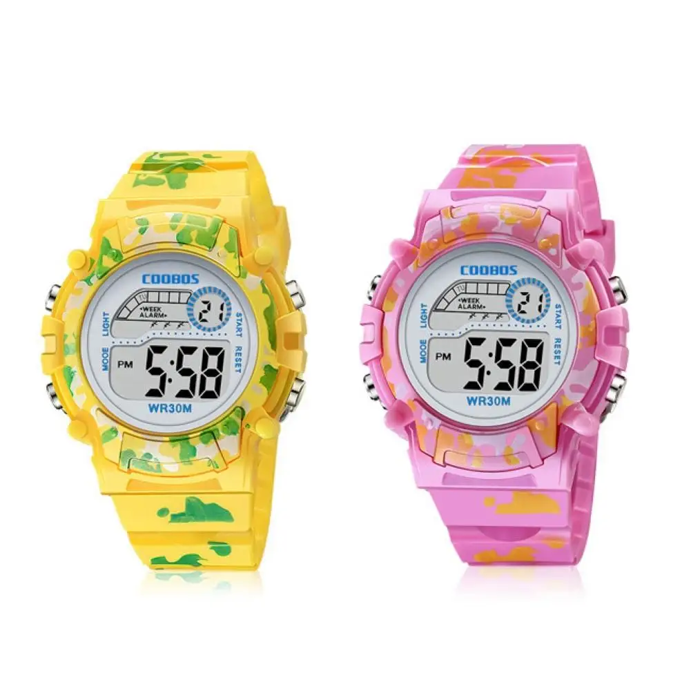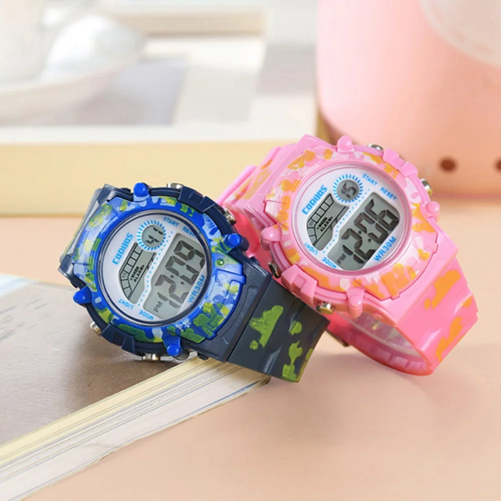Модная детская одежда спортивные светодиодный Дисплей 3Bar Водонепроницаемый Дата Будильник на неделю, цифровые часы унисекс для присмотра за детьми