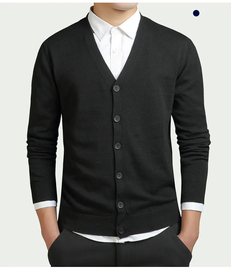 Кардиган мужской хлопковый, с длинным рукавом, V-образным вырезом