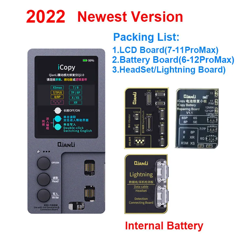 Qianli iCopy Plus 2,0 оригинальный цветной ремонтный программист для iPhone 7 8P XR XSMAX XS Вибрация/сенсорный/Фоточувствительный/Ремонт батареи