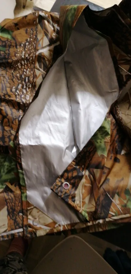 Мой не пришел с застежкой @-@ молнией или кнопками, как показано на фотографиях. У меня липучка. Я бы не стал его использовать в качестве брезента. Будет по @-@ прежнему держать вас сухим при использовании в качестве пончо, хотя.
