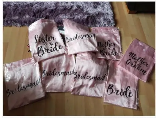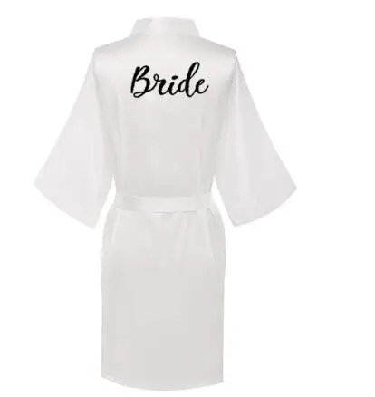 Халат-кимоно для подружки невесты, Атласный халат с белыми и черными буквами для матери, сестры невесты, свадебный подарок