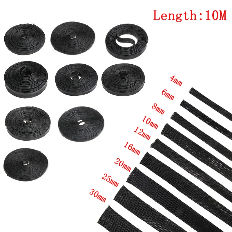 Черная Изолированная оплетка 10 м, 468101216202530 мм, плотная ПЭТ защита кабеля, расширяемая втулка для кабеля, втулка для провода