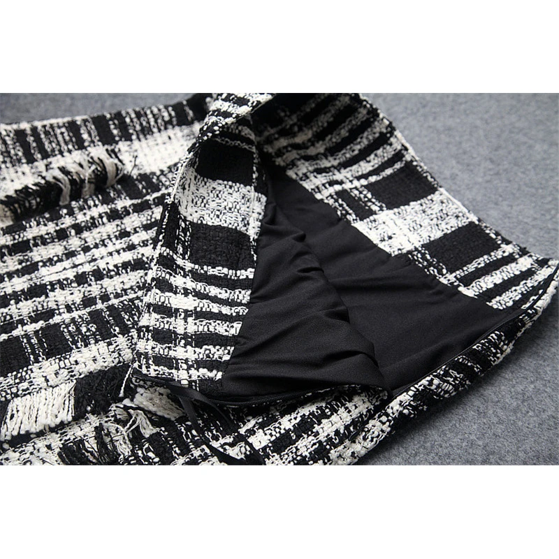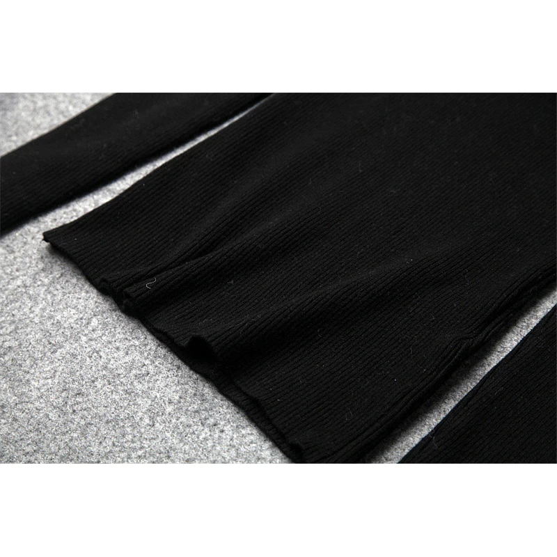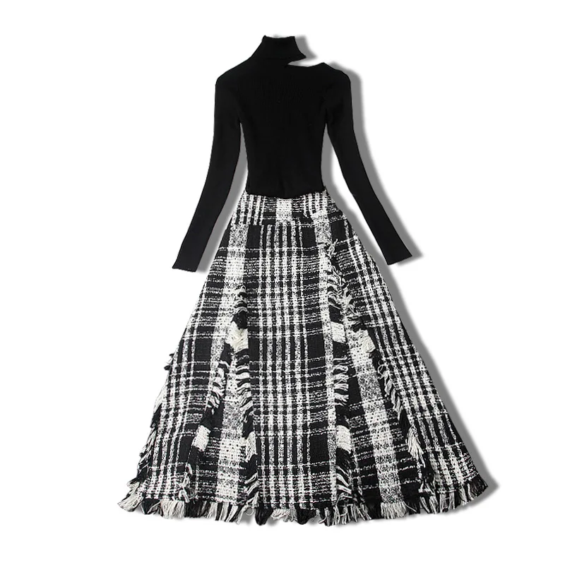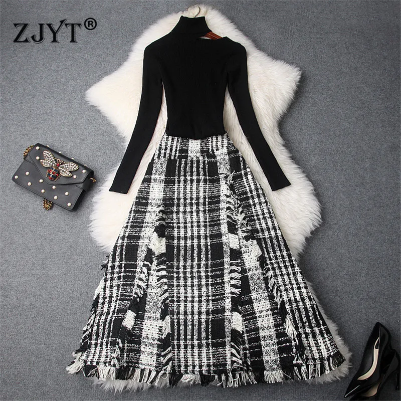 Женский модельный костюм из двух предметов, вязаный свитер с открытыми плечами и высоким воротником и шерстяная юбка, осенний подиумный костюм