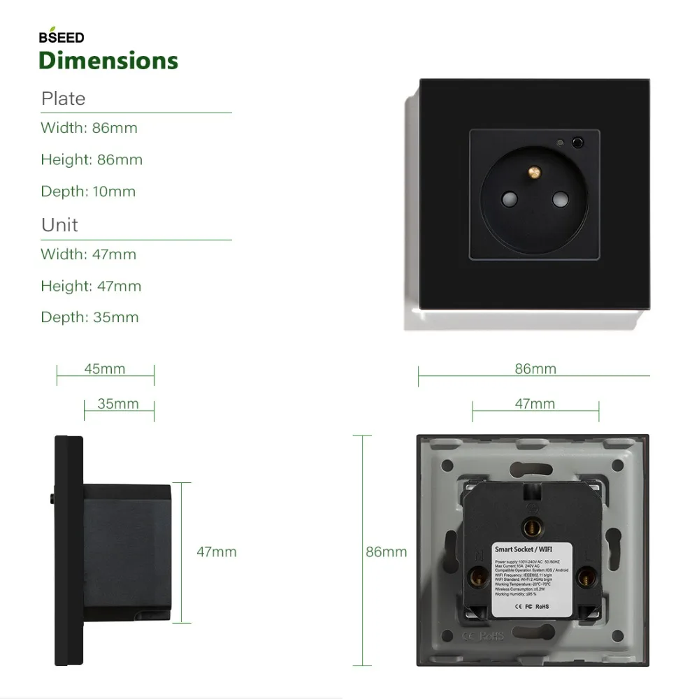 Настенная Wi-Fi-розетка BSEED, стандарт ЕС, 86 х 86 мм, умный монит...