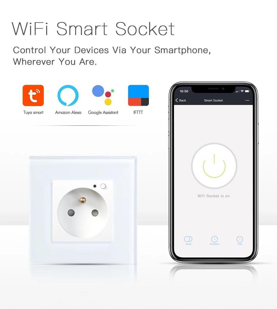 Розетка настенная умная с поддержкой Wi-Fi и управлением через прил...