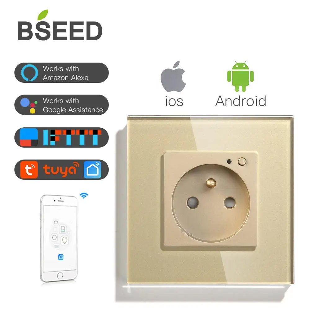 BSEED, Франция, стандарт, Wi-Fi, настенная розетка с белым, черным, золотым стеклом, Хрустальная панель, розетка, умная, французская розетка, поддержка Tuya
