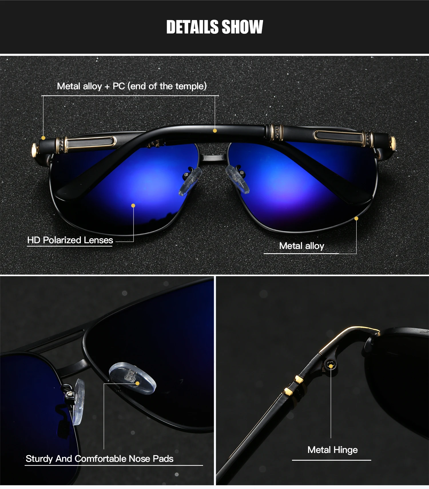 Очки солнцезащитные RoyalHot для мужчин и женщин, поляризационные, 2 луча, в алюминиевой оправе, для вождения, 90082