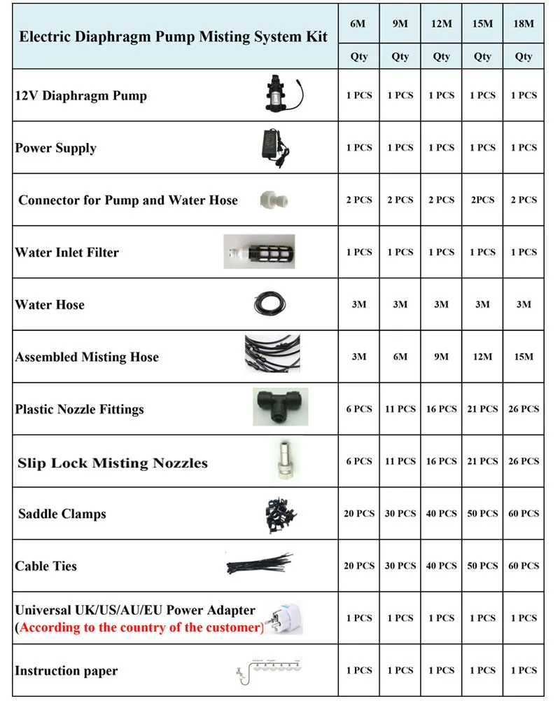 Продукт отличный в соответствии с описанием отличного качества Он полезен для открытых пространств или тропических садов Что работает над его сидением, потому что он мокрый, я надеюсь, что если головка распылителя изменена в меньший размер, будет лучше и лучше установка противотуманной системы