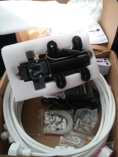 Хорошее качество, стандартный типоразмер всех комплектующих ½ RO. Полная комплектация со стряжками и даже пластиковыми скобами с гвоздиками для настенного монтажа. Есть возможность купить другие сменные сопла стандартного размера, как и весь ряд арматуры ½ обратного осмоса(RO). Хороший конструктор для взрослых, при наличии фантазии из этих комплектующих легко собирается множество вариантов. Из актуального это - Завеса дезинфектор (нужен датчик движения, реле задержки или большая кнопка с отскоком). Очень актуально для проходных. Из плохого это ОЧЕНЬ ДОЛГАЯ ДОСТАВКА.