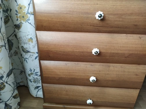 Прикольные ручки, качественные. Правда шурупы коротковаты оказались, пришлось заменить. Смотрятся хорошо) хотелось бы немного побольше на мой комод. С продавцом не общалась.