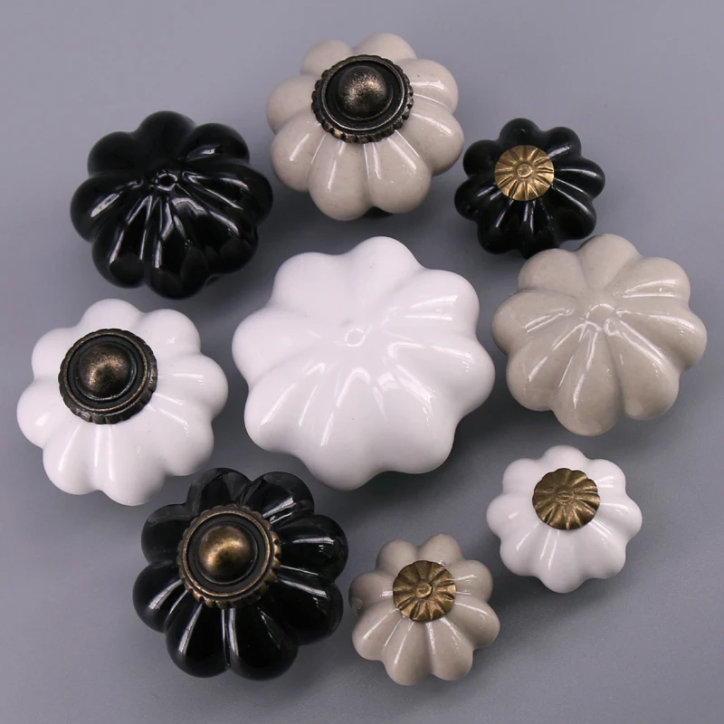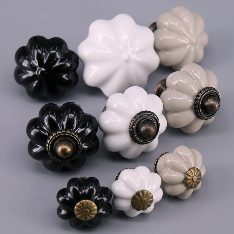 1x серый белый черный керамический ящик в форме тыквы, мебельные ручки для шкафа дверная ручка для шкафа
