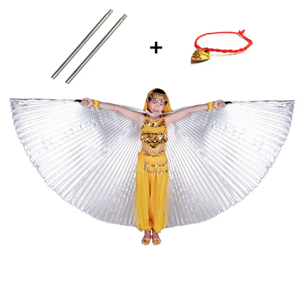 Крылья для танца живота, детские костюмы для танца живота для взрослых, Болливуд, крылья для танца живота, золотые крылья для девочек, 11 цветов, бесплатные палочки