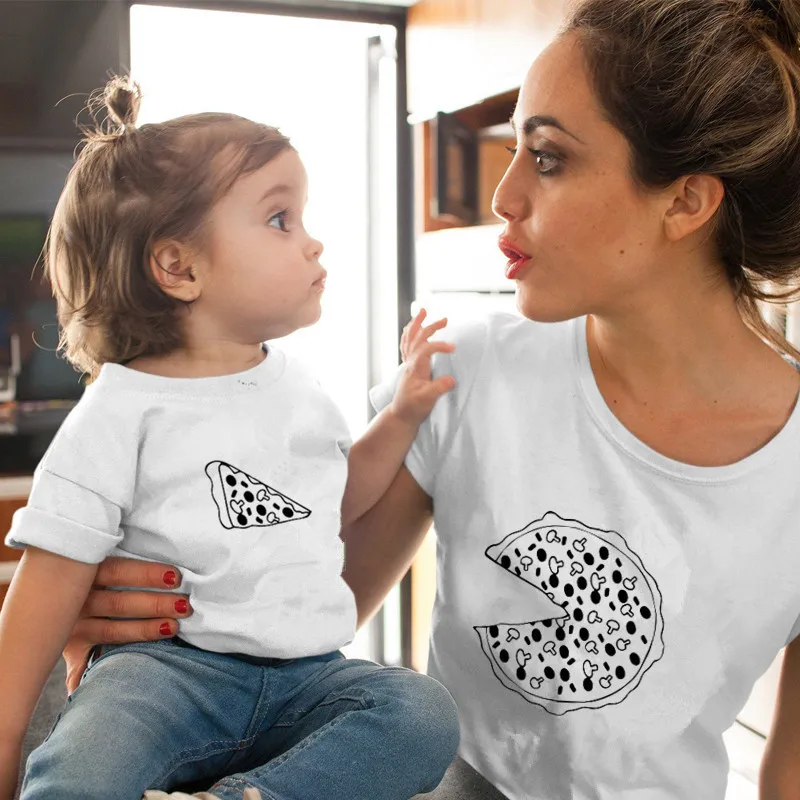 Футболки для мамы, мамы и дочки, одинаковые наряды с изображением пиццы, мама и я, дочери футболка