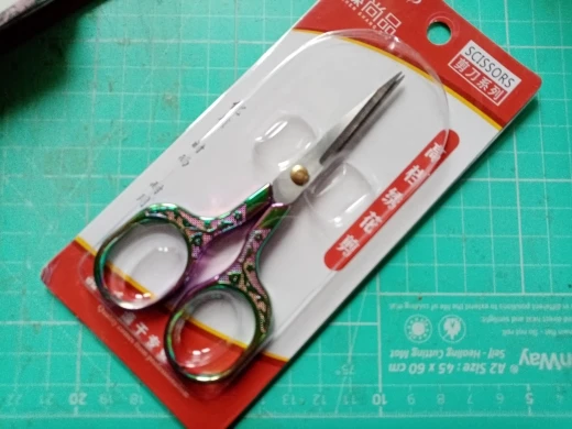 Товар пришел очень быстро и хорошо защищен, он очень красивый, но не хороший, на кончике ножницы не режут