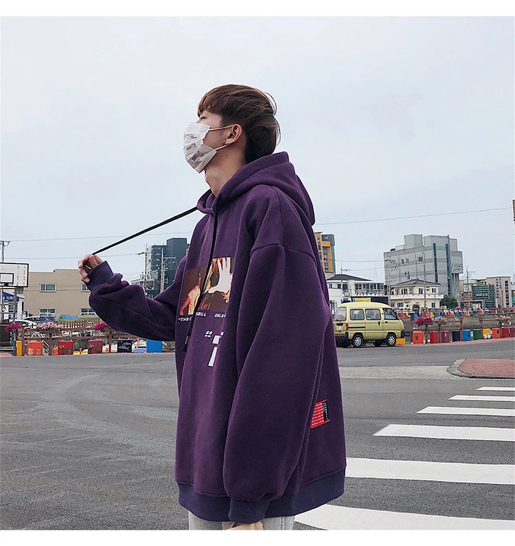 Толстовка мужская оверсайз с капюшоном и надписью в стиле Харадзюку
