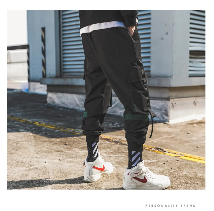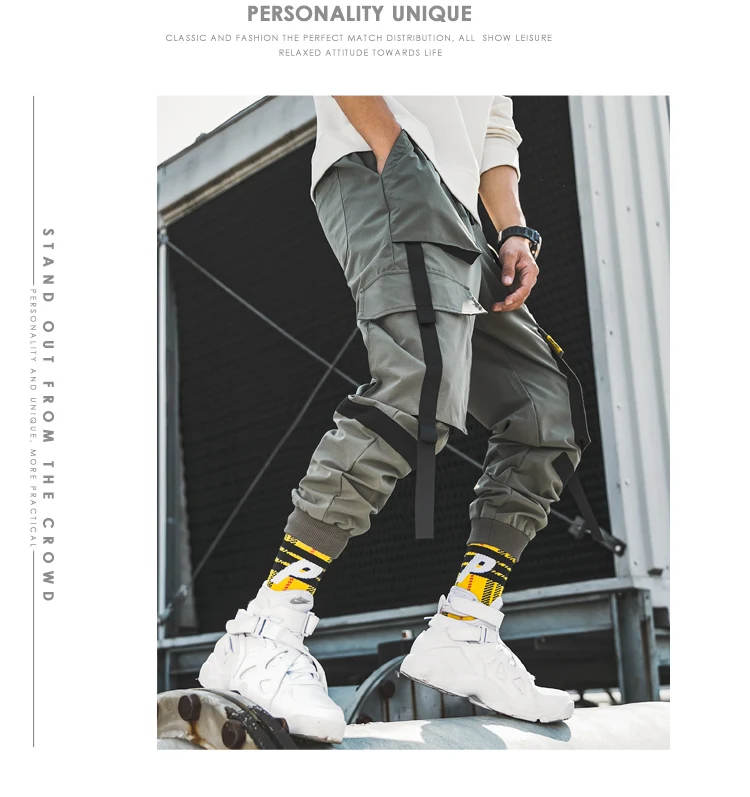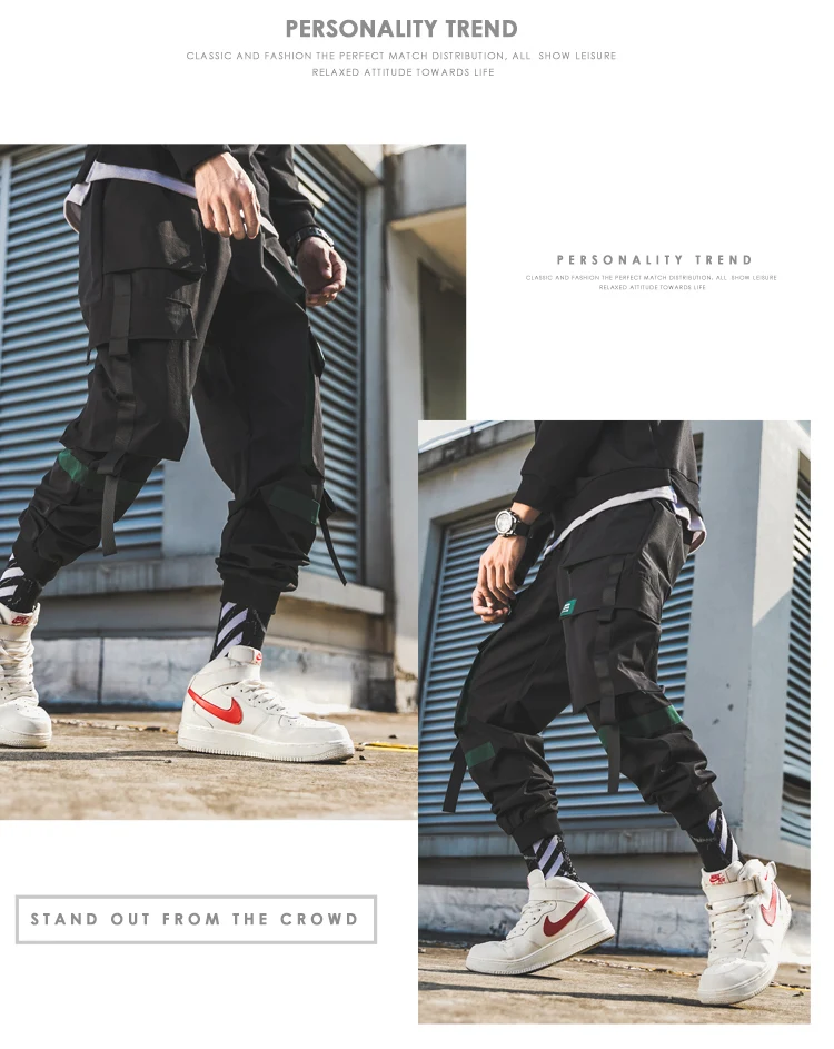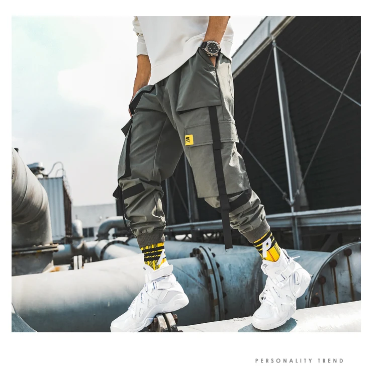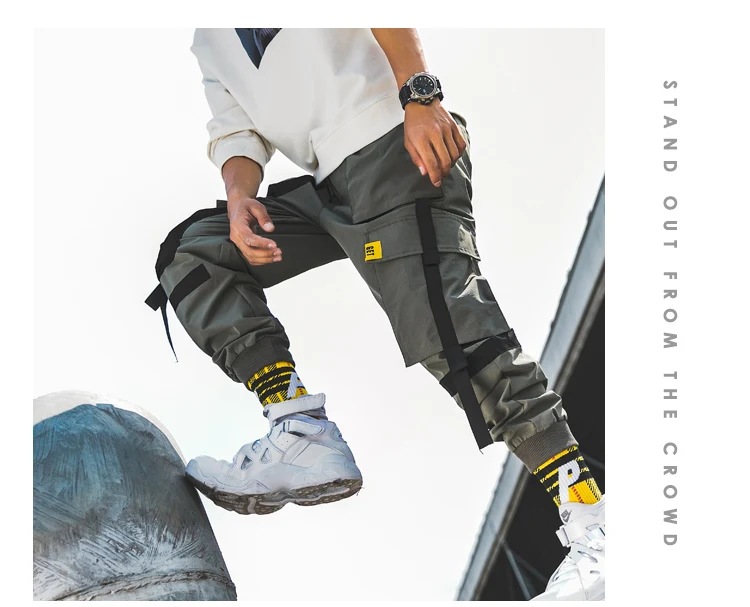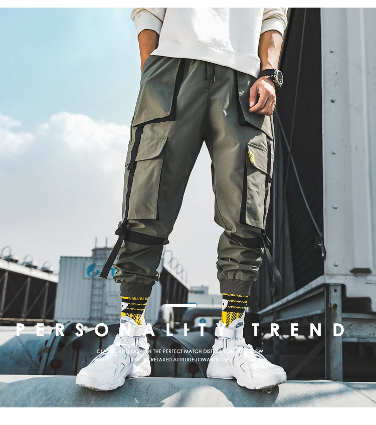 Мужские повседневные брюки-джоггеры с лентами, осенние брюки-карандаш в стиле сафари, уличная одежда с карманами, Новинка