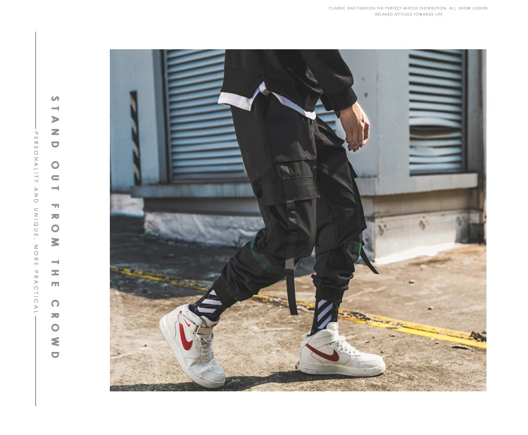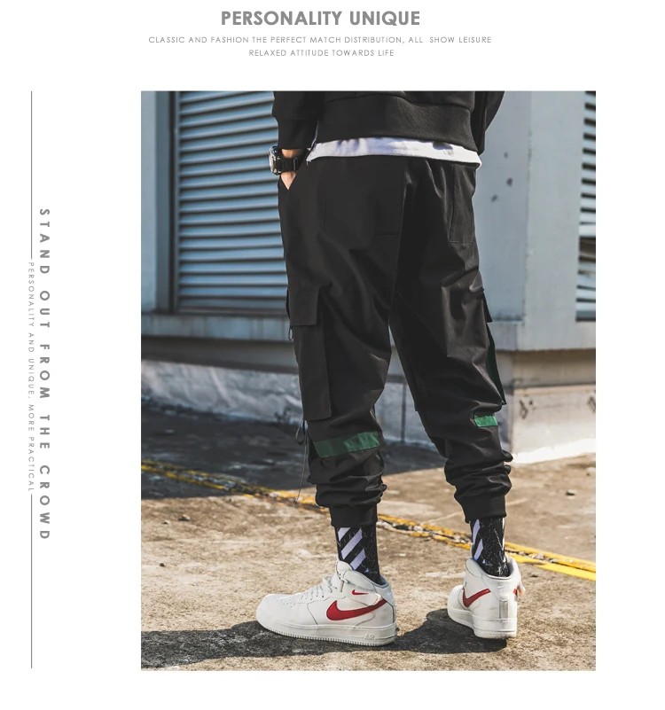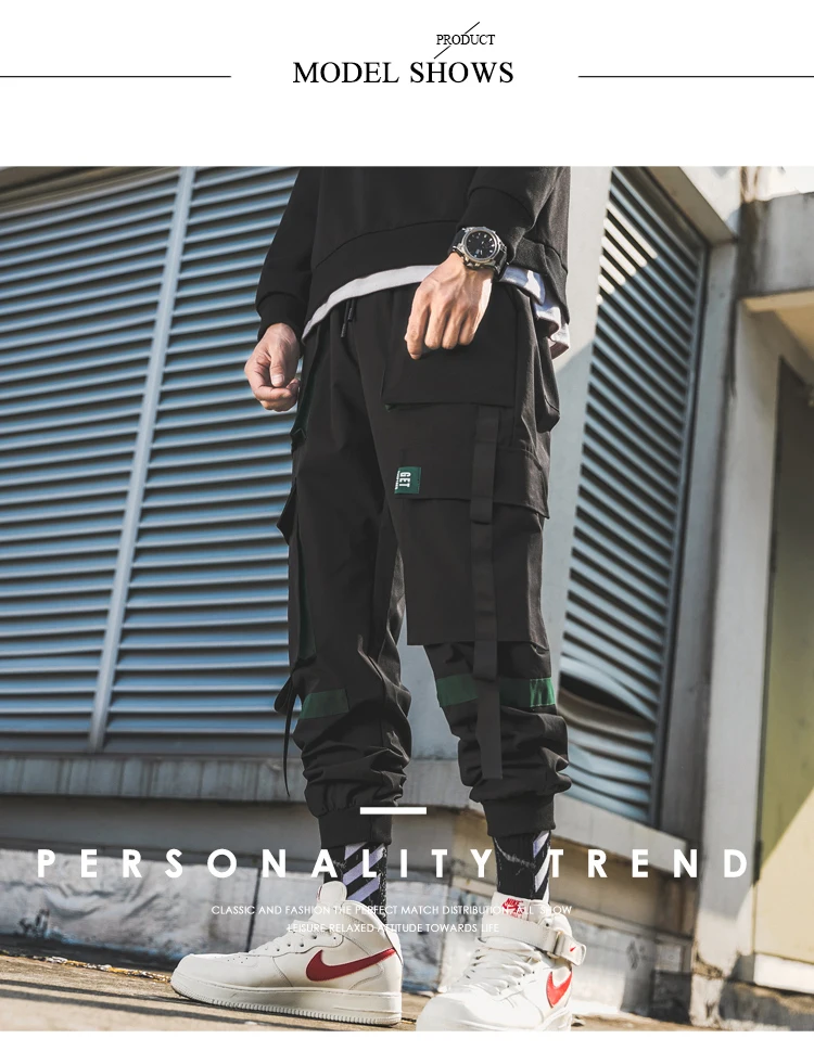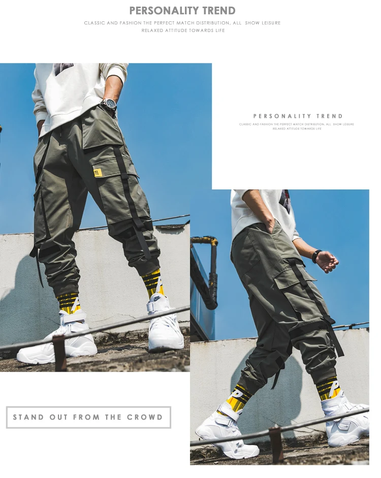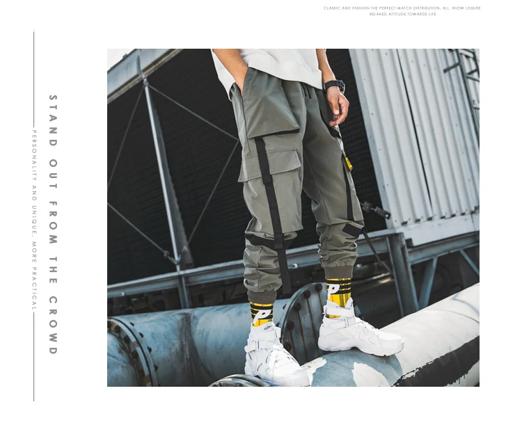Мужские повседневные брюки-джоггеры с лентами, осенние брюки-карандаш в стиле сафари, уличная одежда с карманами, Новинка