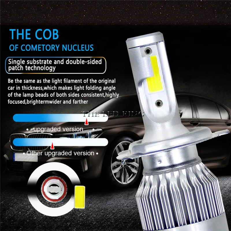 Новые поступления H 7 H11 H1 H3 9005 9006 COB светодиодный головной светильник лампы H4 (Подол короче спереди и длиннее сзади) Луч 72W фары для 8000LM 6500K4300 К авто светодиодный светильник