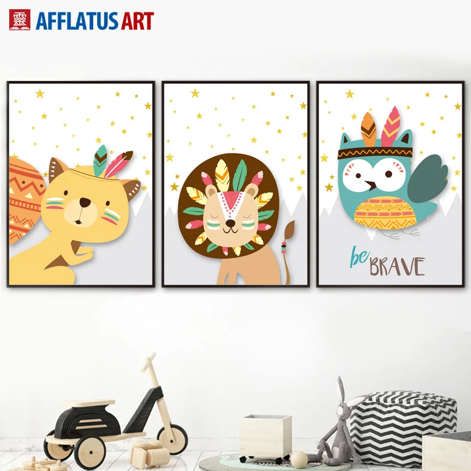 Палатка с изображением медведя лисы льва Совы енота, плакаты и картины в скандинавском стиле, настенная живопись, картины на стену, декор для детской комнаты