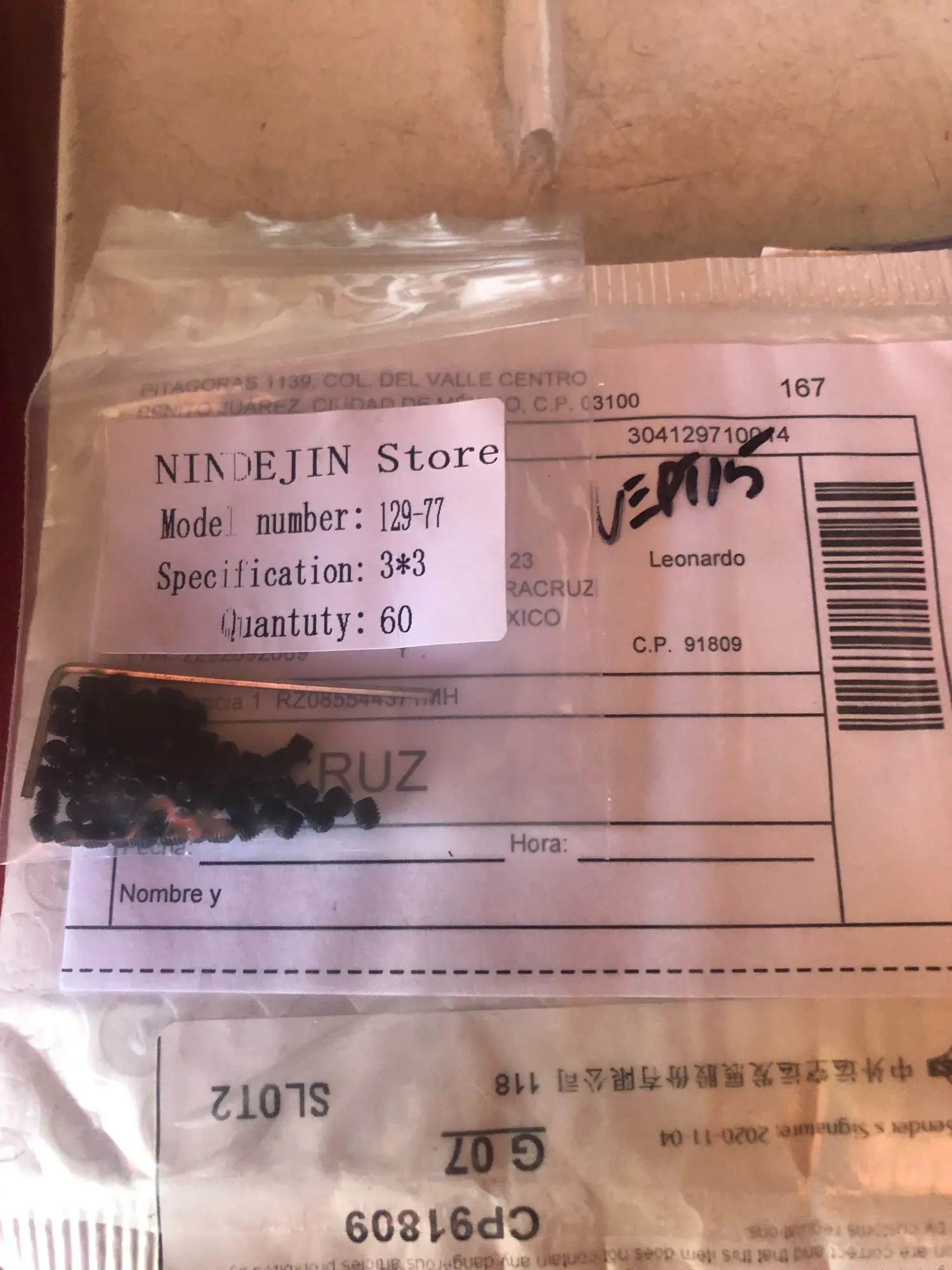 Все в порядке, пришел 60 винтов и ключ