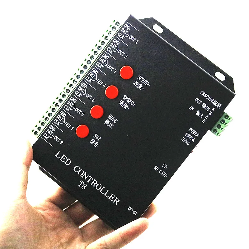 Светодиодный RGB-контроллер T8, sd-карта, контроллер пикселей, 8 каналов, для WS2801 WS2812B WS2811 LPD6803, светодиодный RGB-контроллер, программируемый контроллер, светодиодный