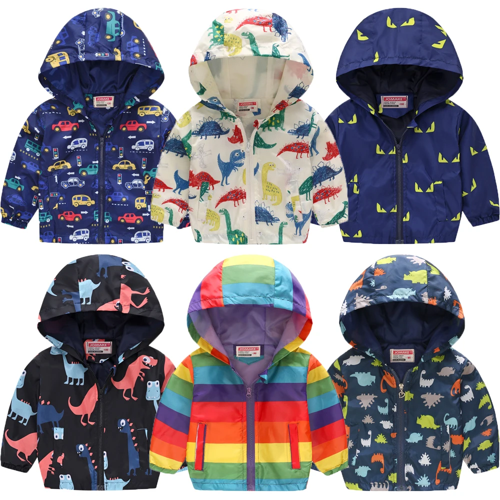 Толстовка с капюшоном для маленьких мальчиков, модные пальто с мультяшным принтом динозавра для мальчиков, осенняя верхняя одежда для активного отдыха, красивая детская одежда