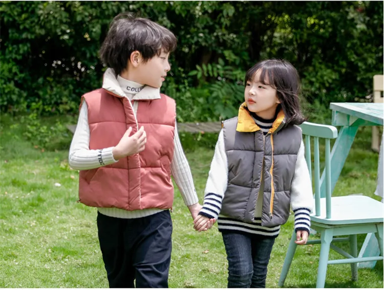 Новинка, осенне-зимняя Детская жилетка, теплые жилеты для мальчиков и девочек, плотные жилеты, Детская куртка без рукавов желтого и красного цветов