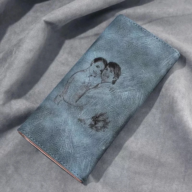 Бумажник с гравировкой на заказ, женский бумажник с гравировкой на фото тройного сложения, длинный секционный бумажник с ручной настройкой, подарок на день матери