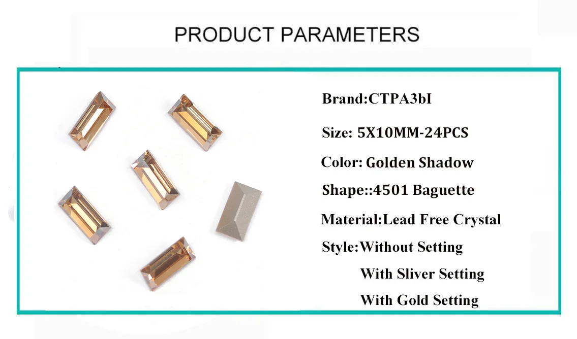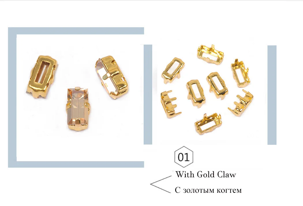 CTPA3bI золотистые тени цвет в форме багета пришить стразы с кристаллами задние Стразы с оправой строчки