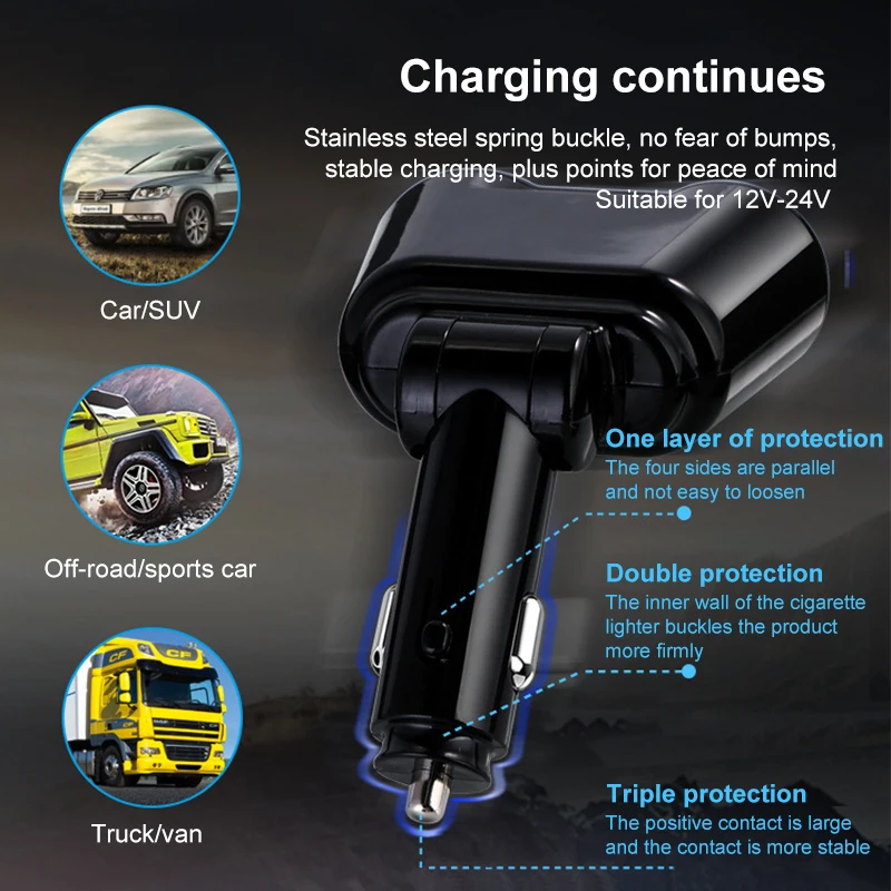 Хороший разветвитель, пришёл быстро, работает, показывает напряжение не совсем точно, но в пределах 0,2-0.3 в, единственный минус - слабо держится в гнезде прикуривателя.