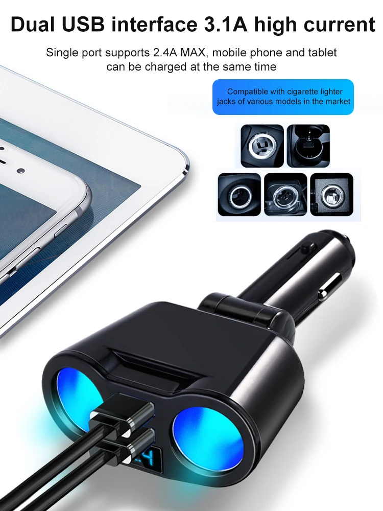 Автомобильный Универсальный разветвитель прикуривателя 12 в-24 в, адаптер питания 120 А, Вт, двойное автомобильное зарядное устройство USB с дисплеем напряжения