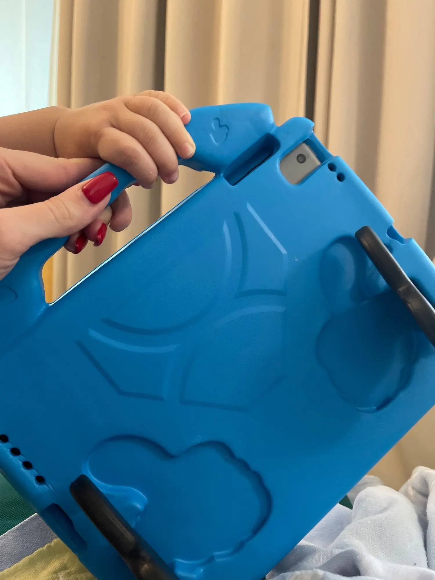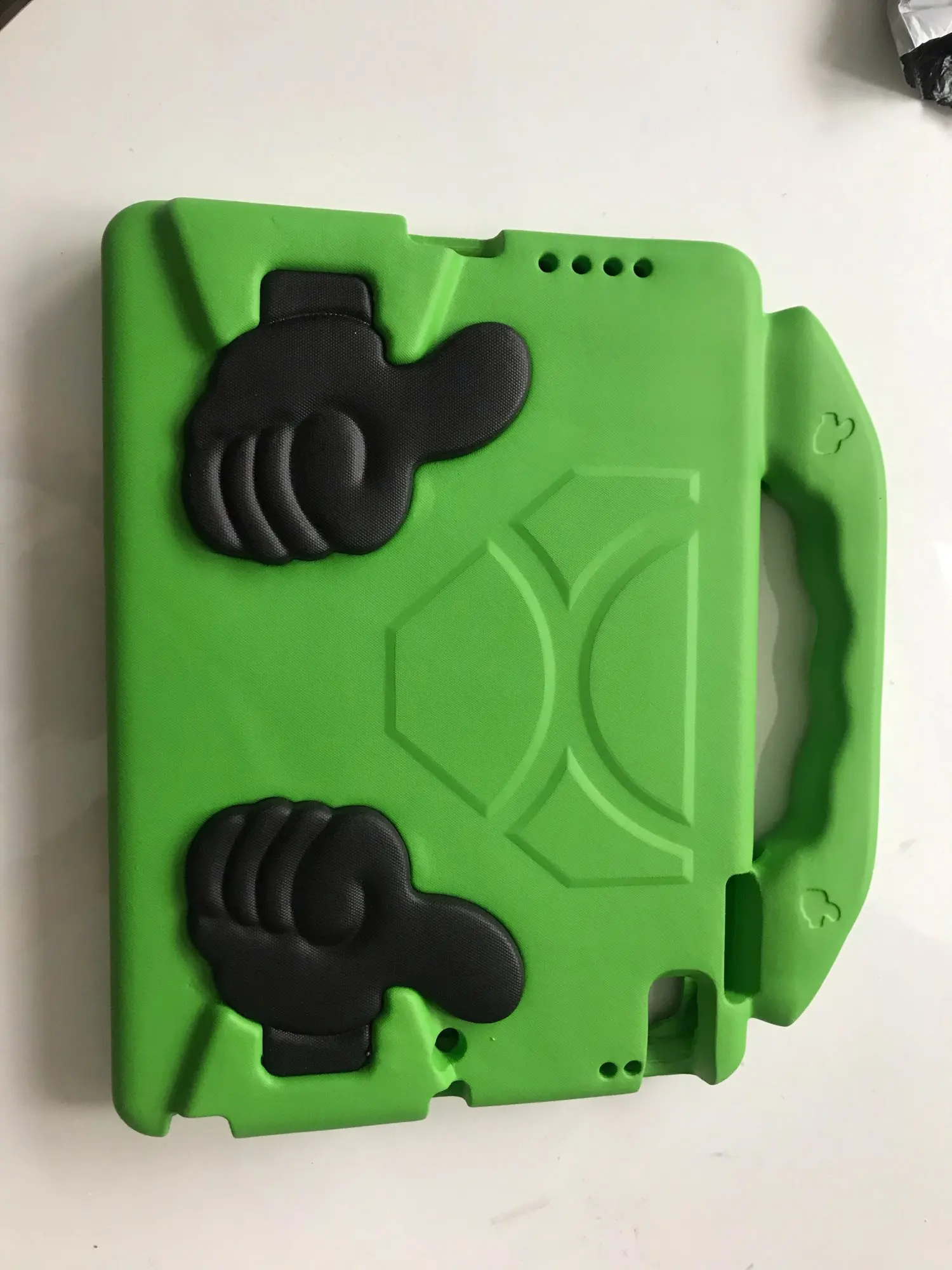 Этот чехол не может быть очень красивым, но тот, кто предлагает iPad детям играть,-это душа отдыха, очень легкий и прочный, такой же материал тапочек Crocs. Идеально подходит, после попадания на детей не удается удалить. Очень доволен.