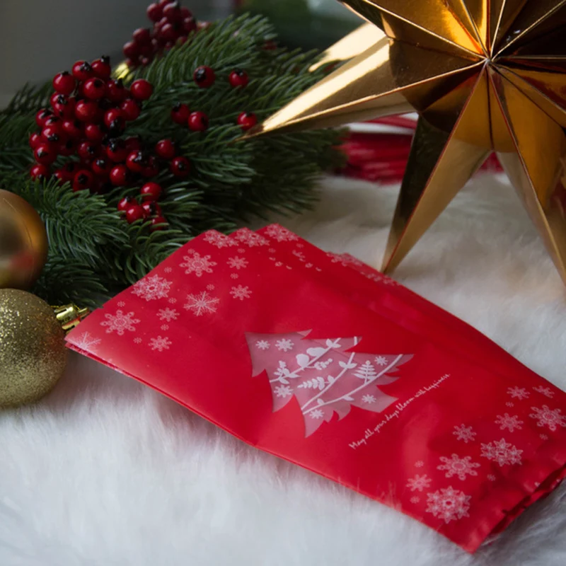 Пакет для конфет из ПВХ, 20 шт., красно-зеленая подарочная упаковка для детей, Рождественский Декор, упаковка для выпечки печенья, украшение для дома