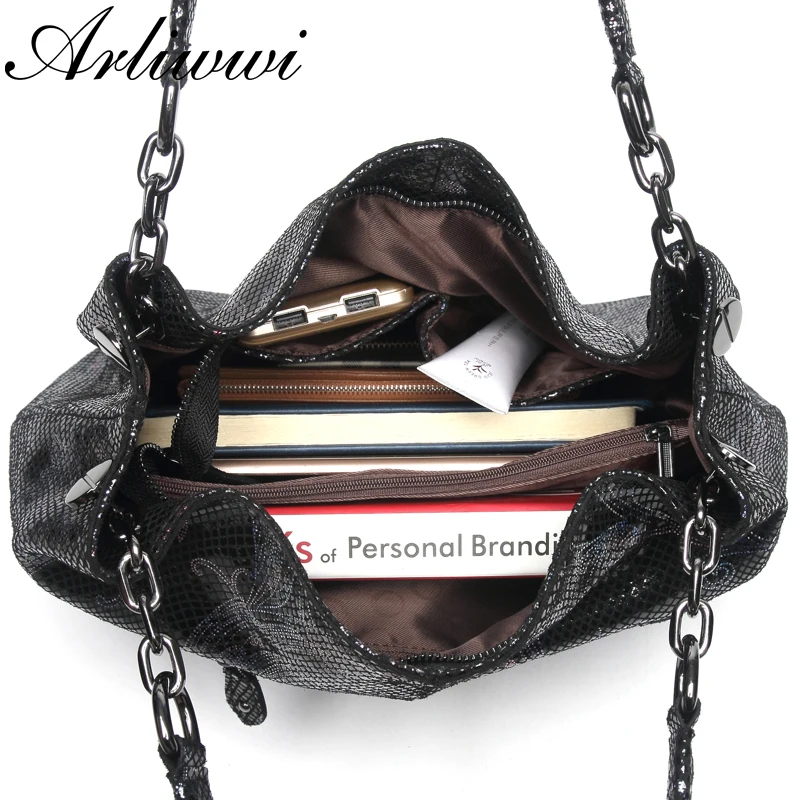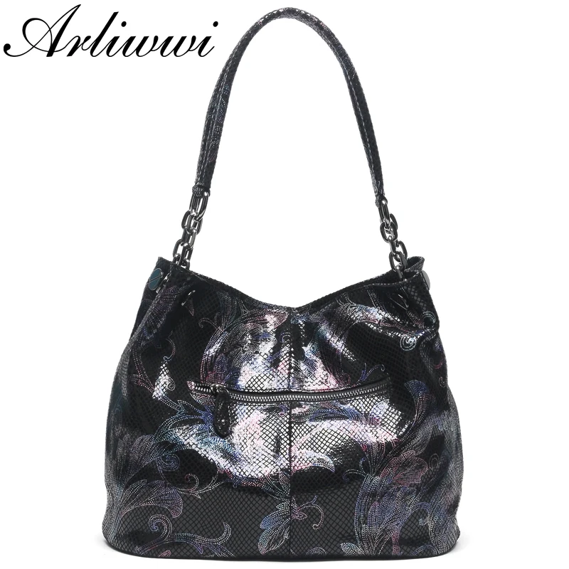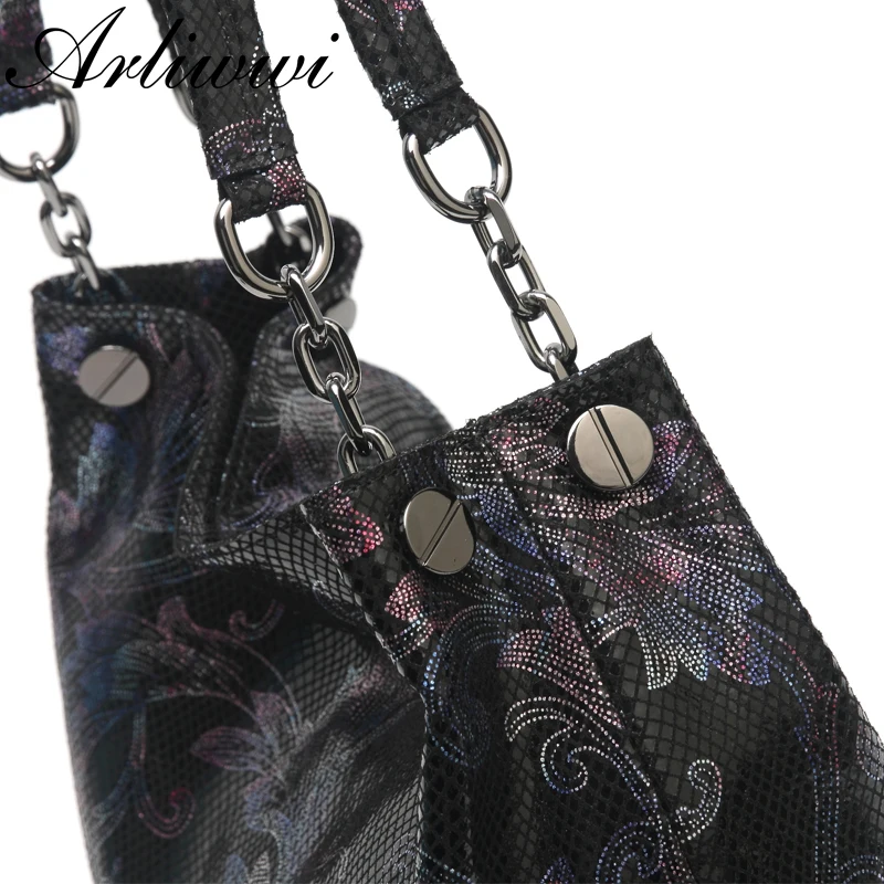 Женская сумка Arliwwi, из 100% натуральной кожи с блестящими цветами, с оловянной цепочкой, с тиснением, GY15