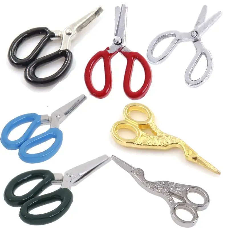 Миниатюры для кукольного домика 1:12, металлические ножницы для шитья, мебельные игрушечные мини металлические ножницы моделирование творческие поделки, аксессуары для игрушек, 6 стилей