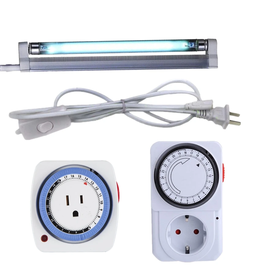 Патрон лампы и лампы + переключатели и вилки 180 см + мини-механический таймер 24 часа (в соответствии со стандартным напряжением страны)