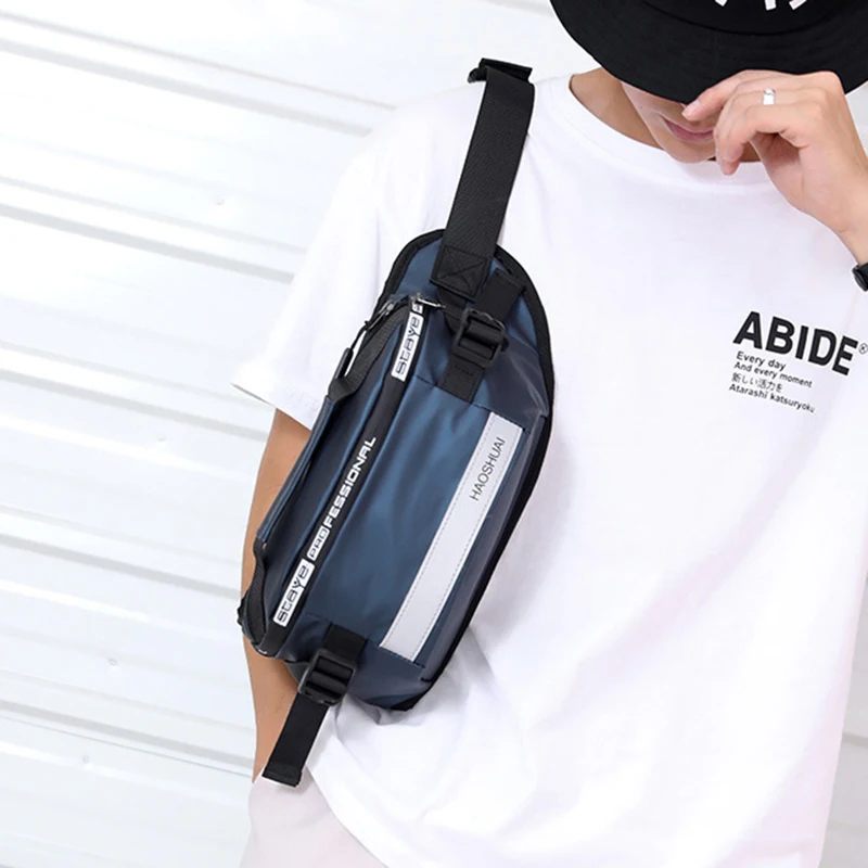 Мужская поясные сумки из нейлона, забавная нагрудная сумка, многофункциональная противокражная светоотражающая полоска, мужская сумка-пояс на бедро