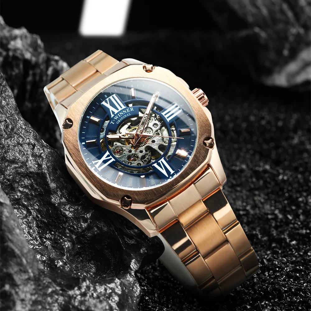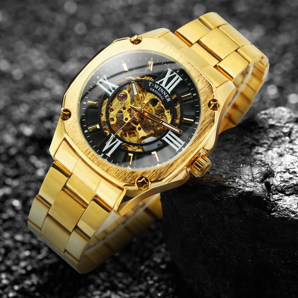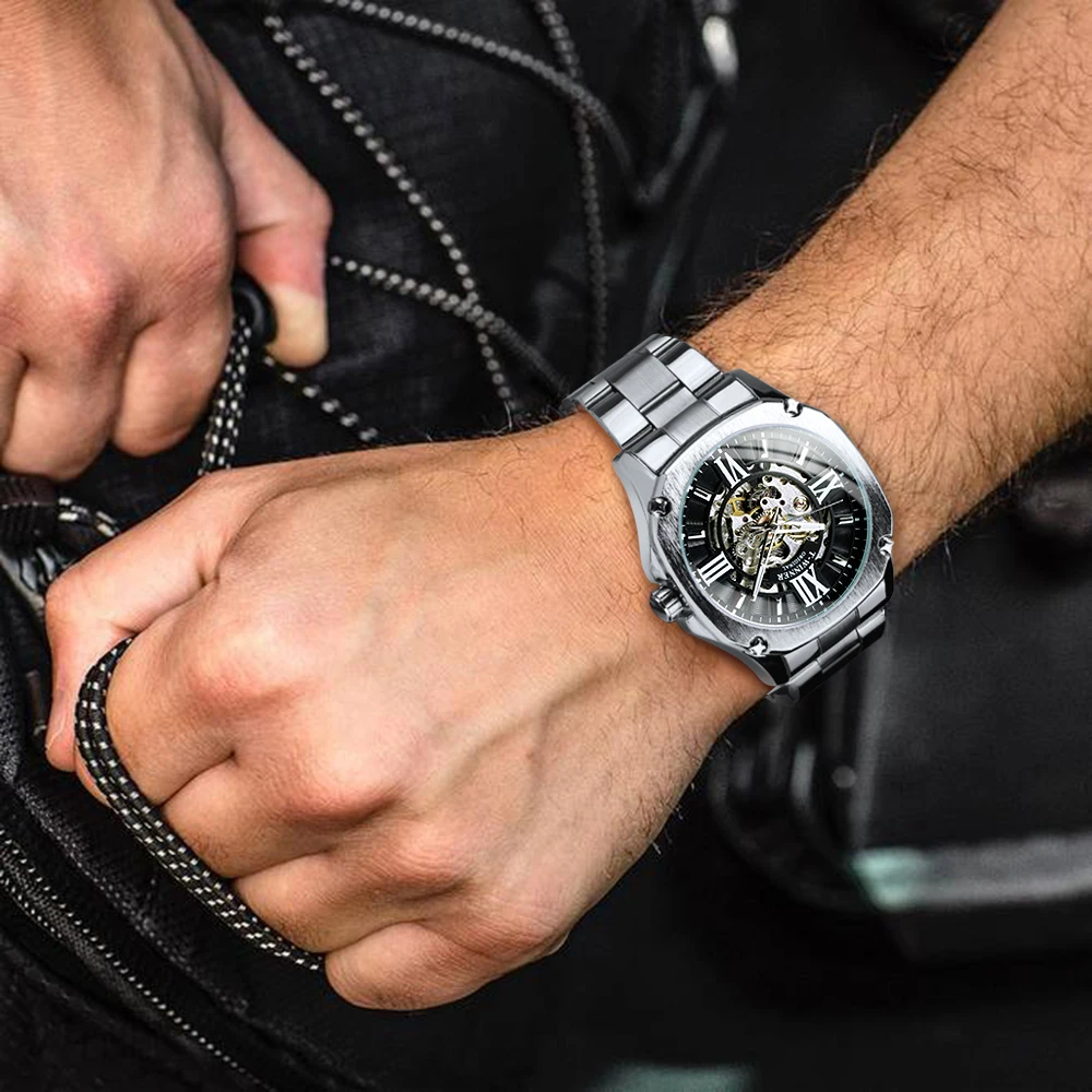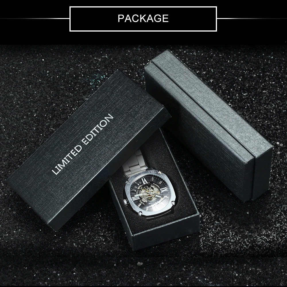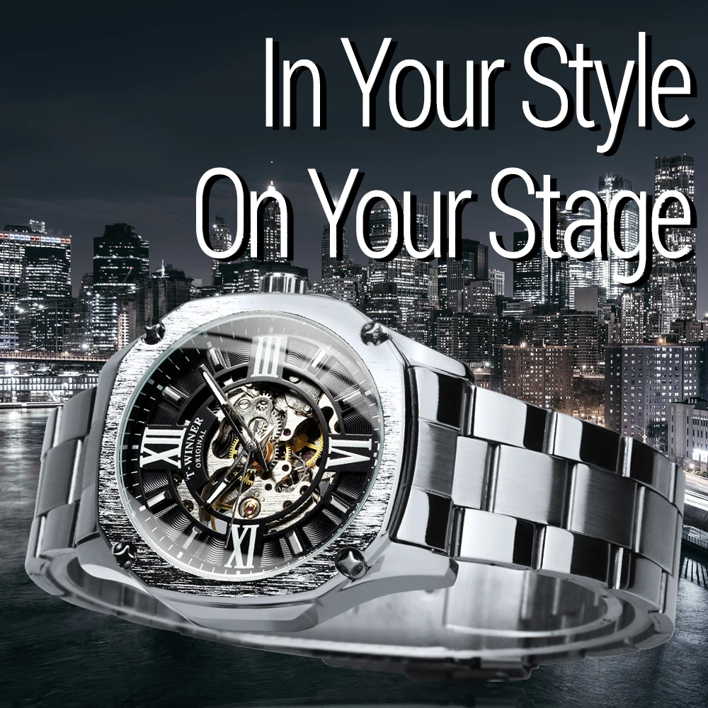 Часы-скелетоны WINNER Мужские механические, модные автоматические брендовые роскошные квадратные, из нержавеющей стали
