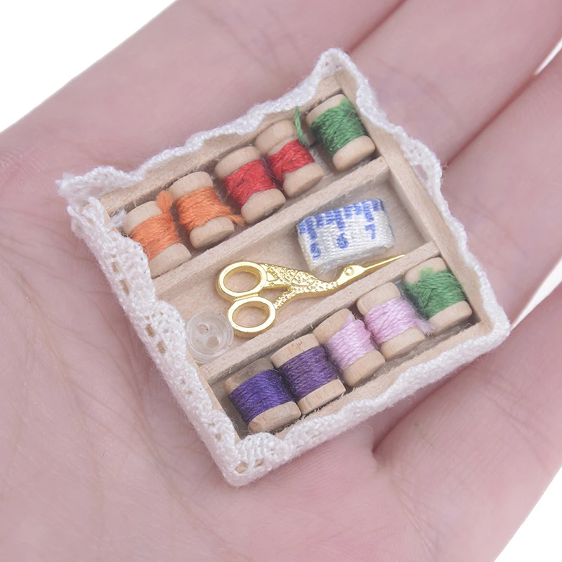 1:12 миниатюрная винтажная деревянная швейная коробка с иглой, набо...