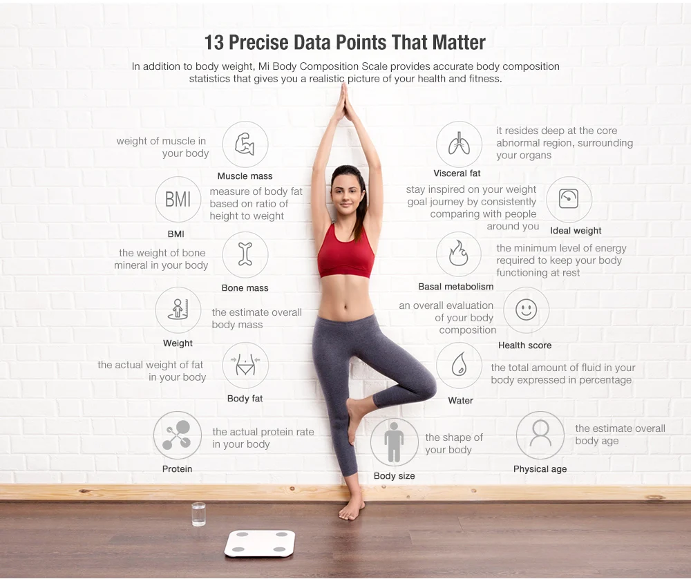 G-образный датчик, 50 г может быть воспринят.Высокоточный чип BIA для легкого контроля доли жира в организме.13 данных тела, полное понимание физического состояния.Тест баланса, закрытые глаза и одна нога доступны.Низкомощный Bluetooth 5,0, 4 батареи могут использоваться в течение 12 месяцев.Привязать просо спортивное приложение, уменьшая жир и формируя тело с половиной усилий.Простой дизайн, простой и чистый, изысканный и красивый.