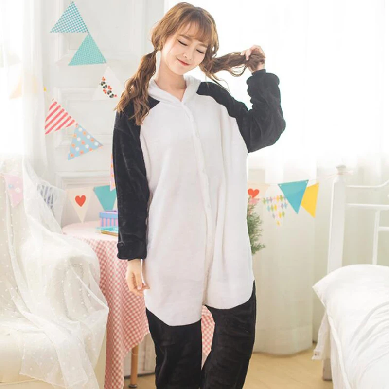 Зимняя женская черная Панда косплей Кигуруми Onesie для взрослых забавная Пижама с животными для мужчин свободные теплые Аниме пижамы комбинезон