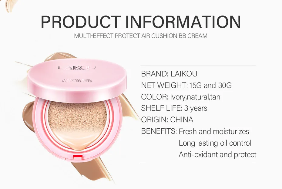 BB-крем на воздушной подушке LAIKOU, консилер для макияжа, корейская косметика, голое основание для макияжа, солнцезащитный крем, увлажняющий CC-изоляция