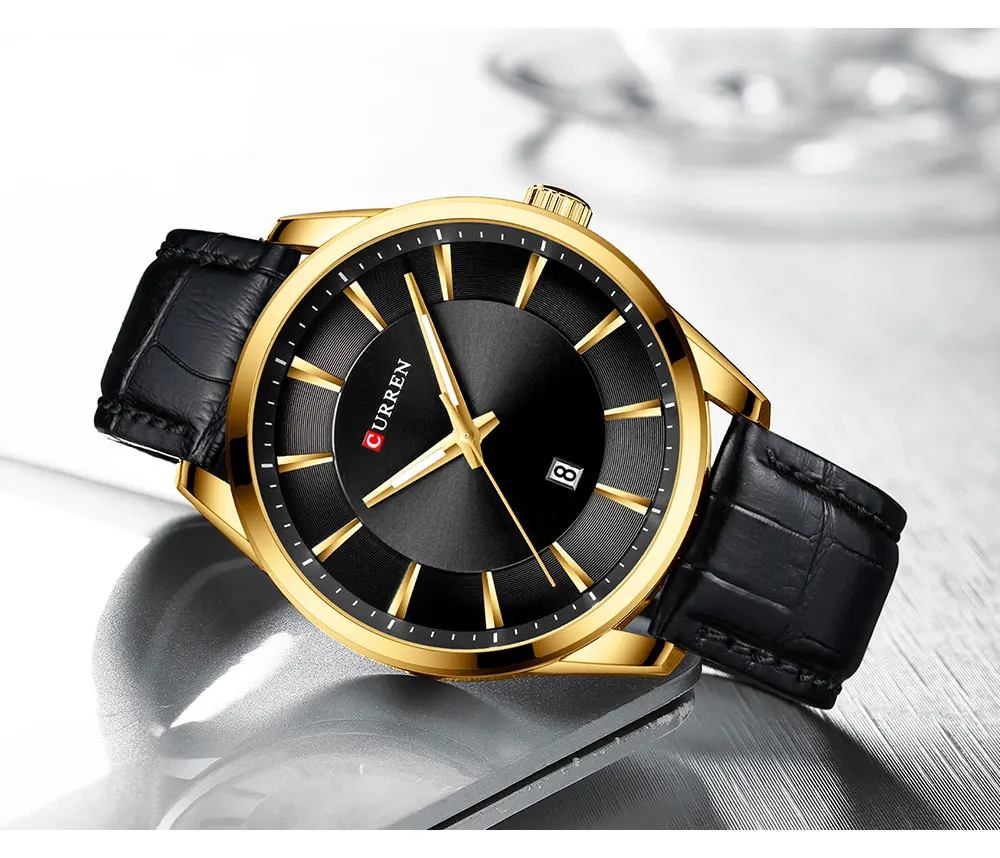 Кварцевые наручные часы Curren, простой дизайн, мужские коричневые деловые повседневные часы с кожаным ремешком, модные часы с датой, мужские наручные часы 2019