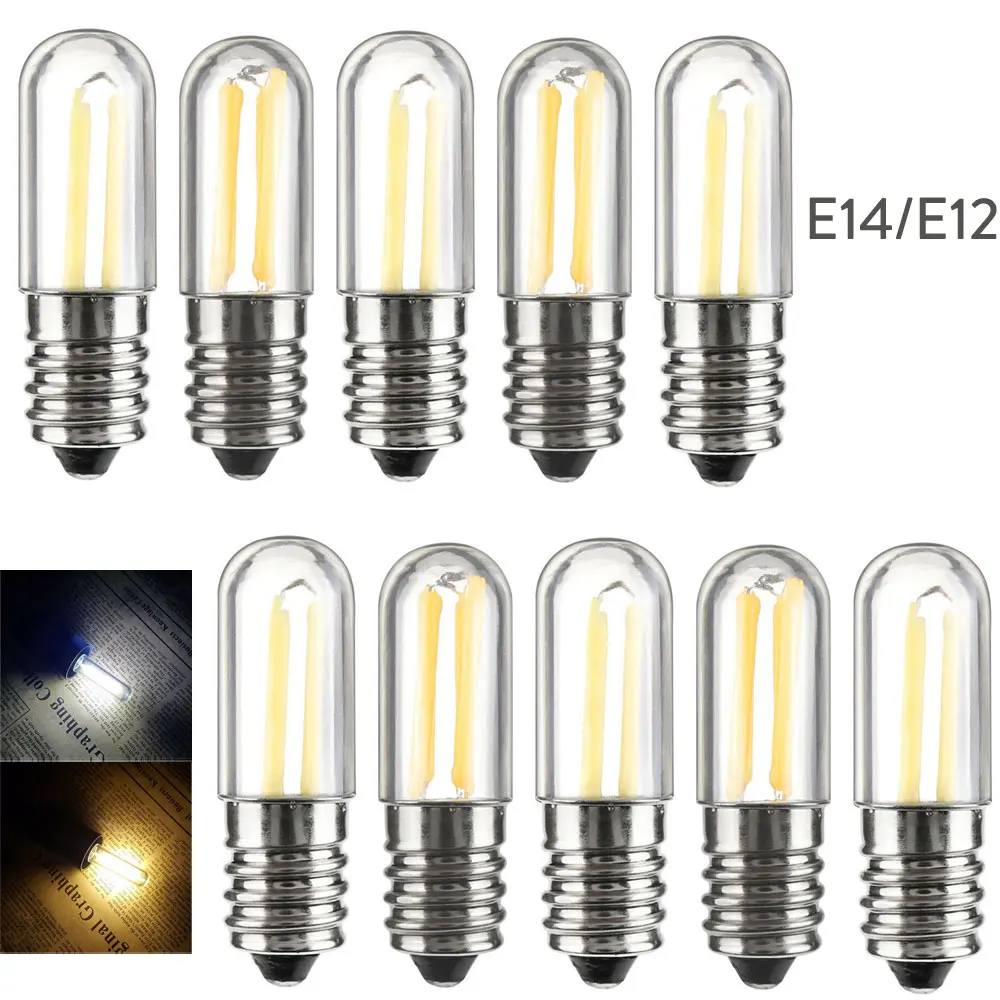 10 шт./лот, диммирусветодиодный Светодиодная лампа E14 E12 для холодильника, светильник пы накаливания, COB лампы, 1 Вт, 2 Вт, 4 Вт, лампа теплого/холодного белого света, 110 В, 220 В