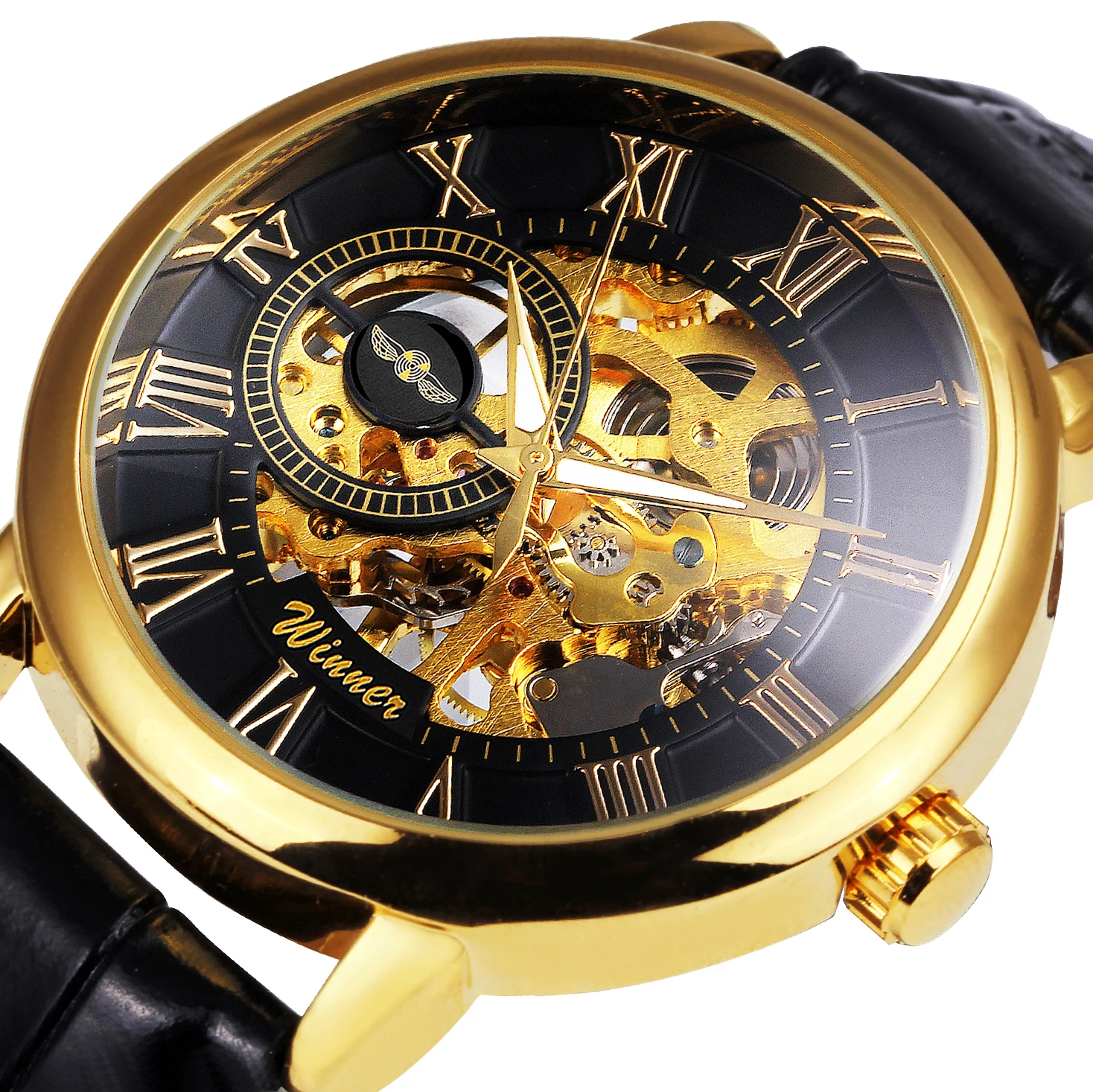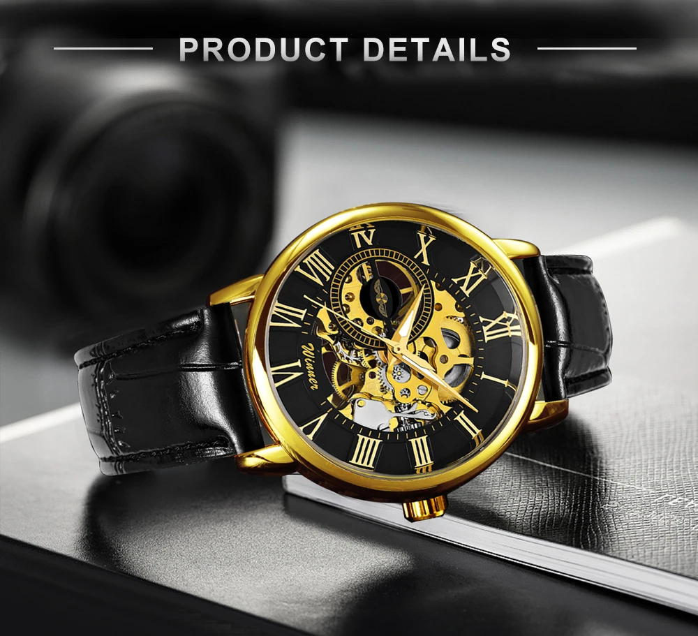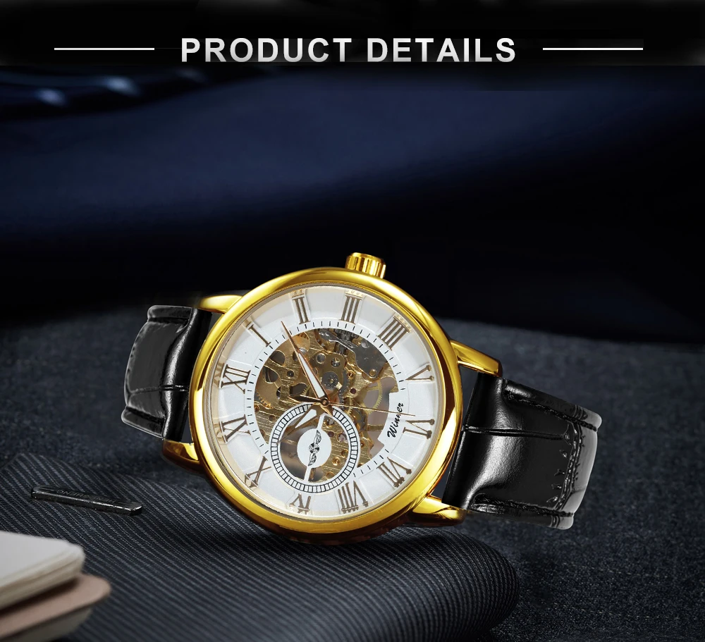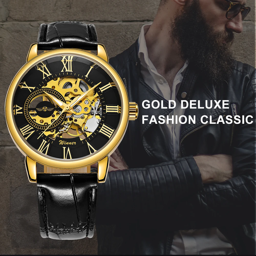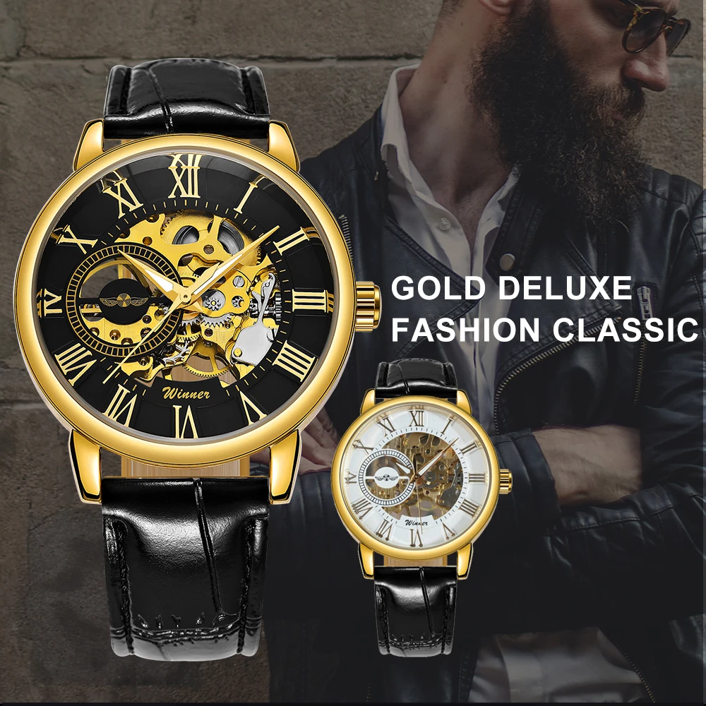 Часы наручные WINNER Мужские механические, модные брендовые роскошные классические, с кожаным ремешком