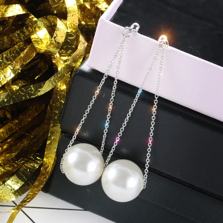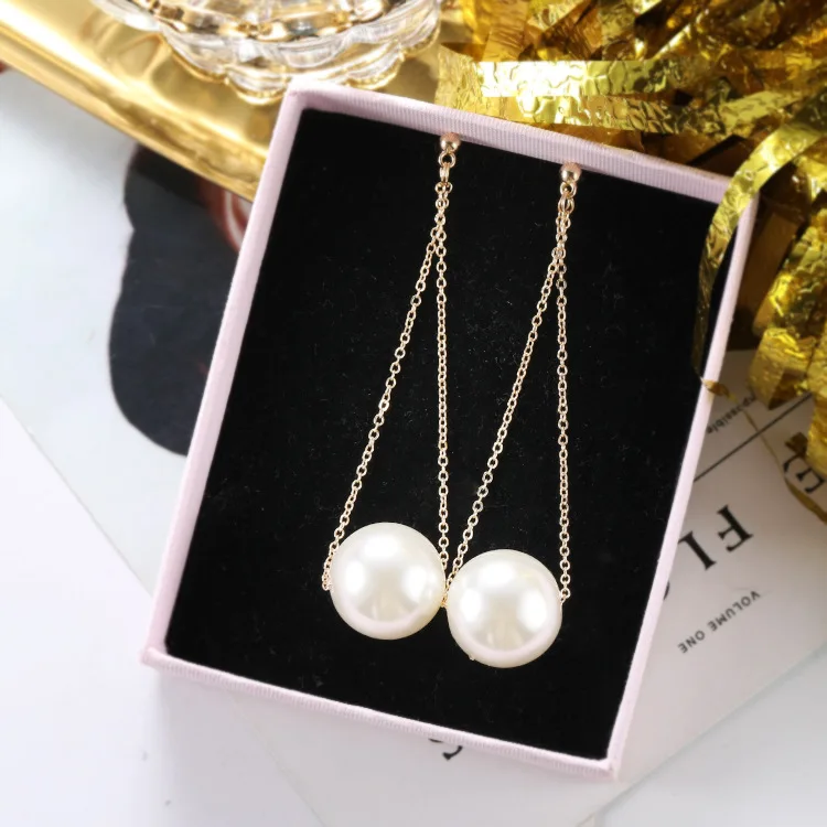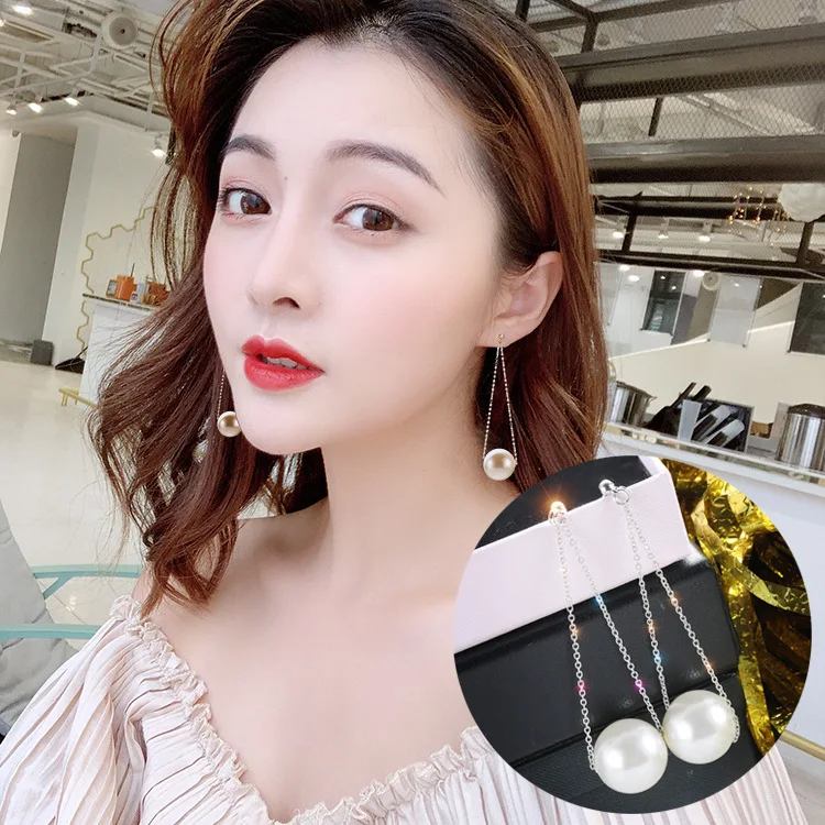 Корейские модные серьги с крупным жемчугом, Простые Супер сказочные длинные серьги с металлической цепочкой и жемчугом