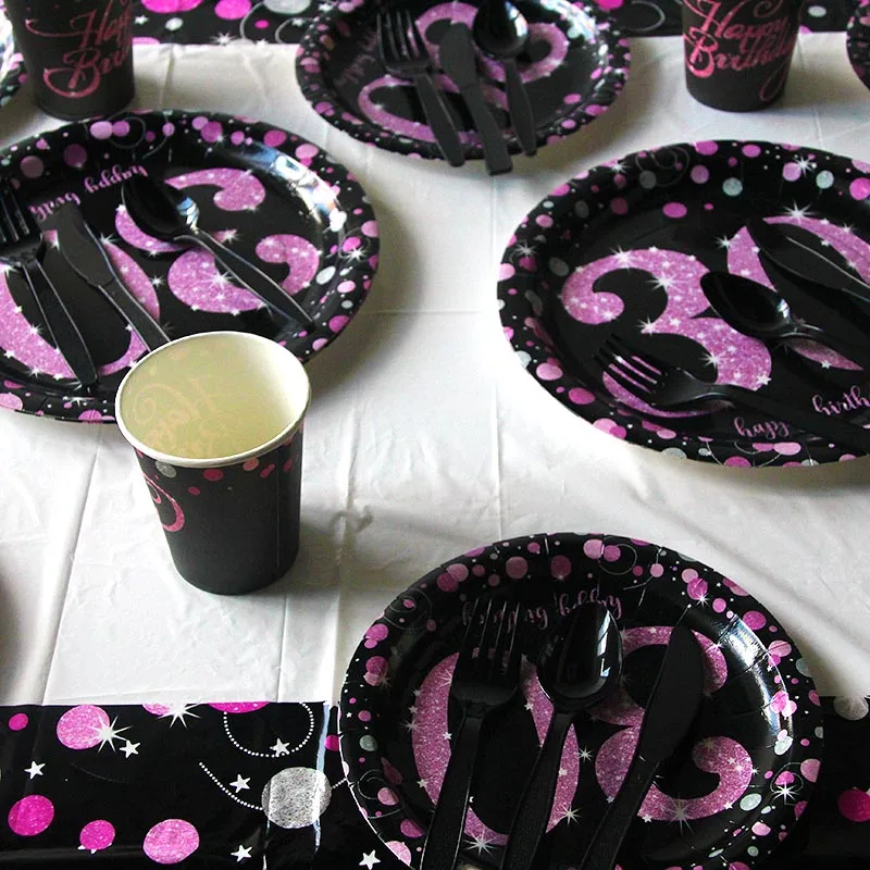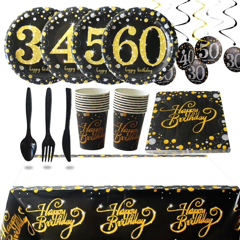 Одноразовые вечерние столовые приборы для взрослых на день рождения 30405060 лет, золотые блестящие бумажные тарелки и стаканы, Декор