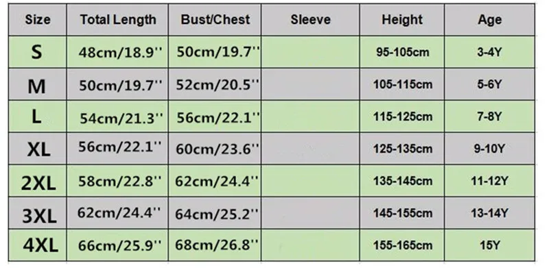 SIZES,M,L,XL,2XL,3XL,4XL for kids